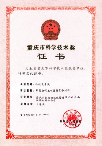 重慶市科委科技進(jìn)步獎(jiǎng)三等獎(jiǎng)