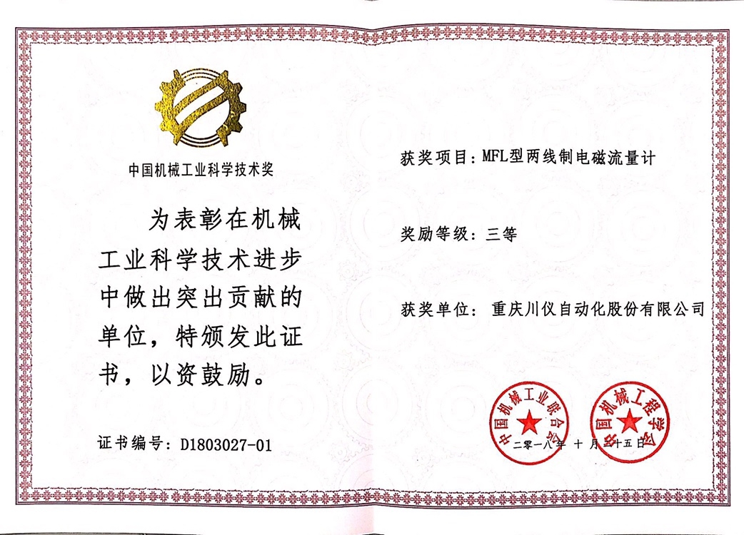 中國(guó)機(jī)械工業(yè)科學(xué)技術(shù)三等獎(jiǎng)