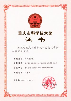 重慶市科技進(jìn)步二等獎(jiǎng)
